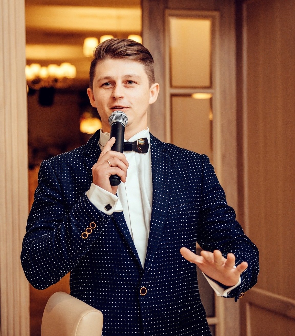 Самый стильный и интеллигентный ведущий. Нахожусь везде, где есть микрофон, и наоборот — микрофон всегда находится там, где нахожусь я!
